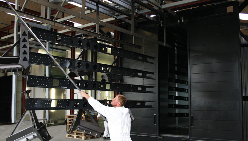 Pro výrobky s hmotností do 2000 kg používáme C-profil, který je osazen po celé délce linky. V případě těžších výrobků využíváme systém z nosníků ve tvaru I.