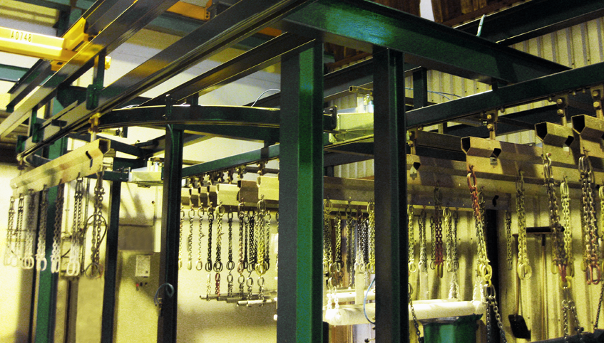 Posunovací koleje, které mohou být dvousměrné nebo fungovat jako točny, mohou být obsluhovány manuálně nebo automaticky pneumatickým způsobem. Pro snadné zavěšení výrobku je možné použít zvedací/spouštěcí zařízení. Pokud se na lince vyskytují různé výšky, můžeme rovněž využít jeřáby.