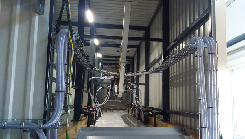 Produkty i detale mogą być zanurzane automatycznie poprzez odpowiednie ukształtowanie toru przenośnika lub za pomocą urządzenia dźwigowych.
